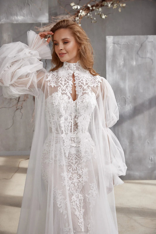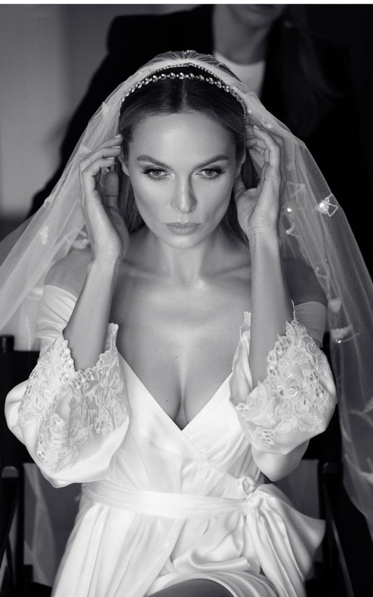ARIANA Luxury Chiffon Bridal Robe with flowers and crystals
