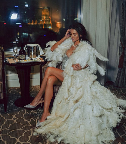 JENA Couture Luxury Robe with Feathers